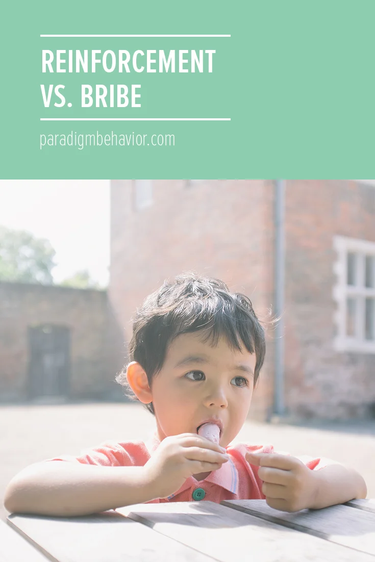 I can see why it is hard to differentiate reinforcement and bribery, but when looking at the terms of the relationship, think about who is actually benefiting from the relationship long term. If you feel like you're always giving your child ice cream for being nice to their friends at school, we may need to assess and figure out how to fade reinforcement while also maintaining good reports from school. With reinforcement, behavior analysts are targeting socially significant behaviors. If ice cream was effective for your child to behave well at school, but you couldn't fade out the ice cream, then the behavior plan wasn't entirely effective. Ice cream for every positive report isn't exactly realistic or healthy. It doesn't mean ice cream was a poor choice of reinforcement; it just means we need to figure out how to effectively fade it out. After all, ice cream once in a while is a great treat and even better shared! :)